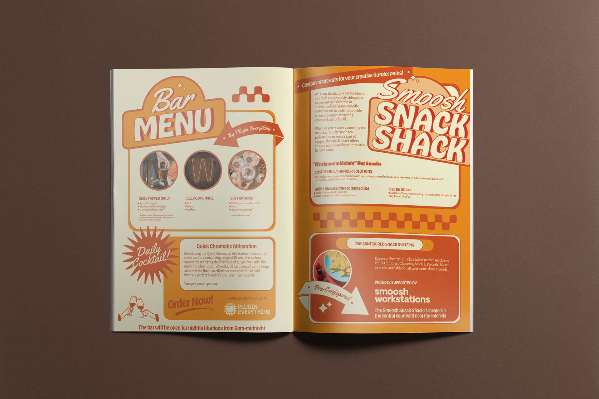 Below is an example of our sponsor promo pages, showcasing the bar sponsor's bespoke content (thanks to Plugin Everything) and our Snack Shack menu, which was proudly sponsored by Smoosh Workstations.